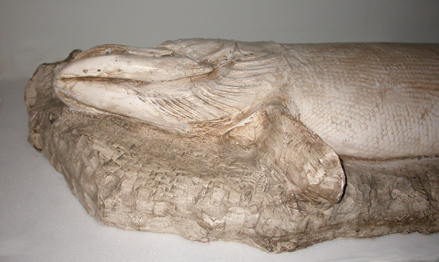 This large and fragile specimen is a plaster cast of a pike caught by the 20th century poet